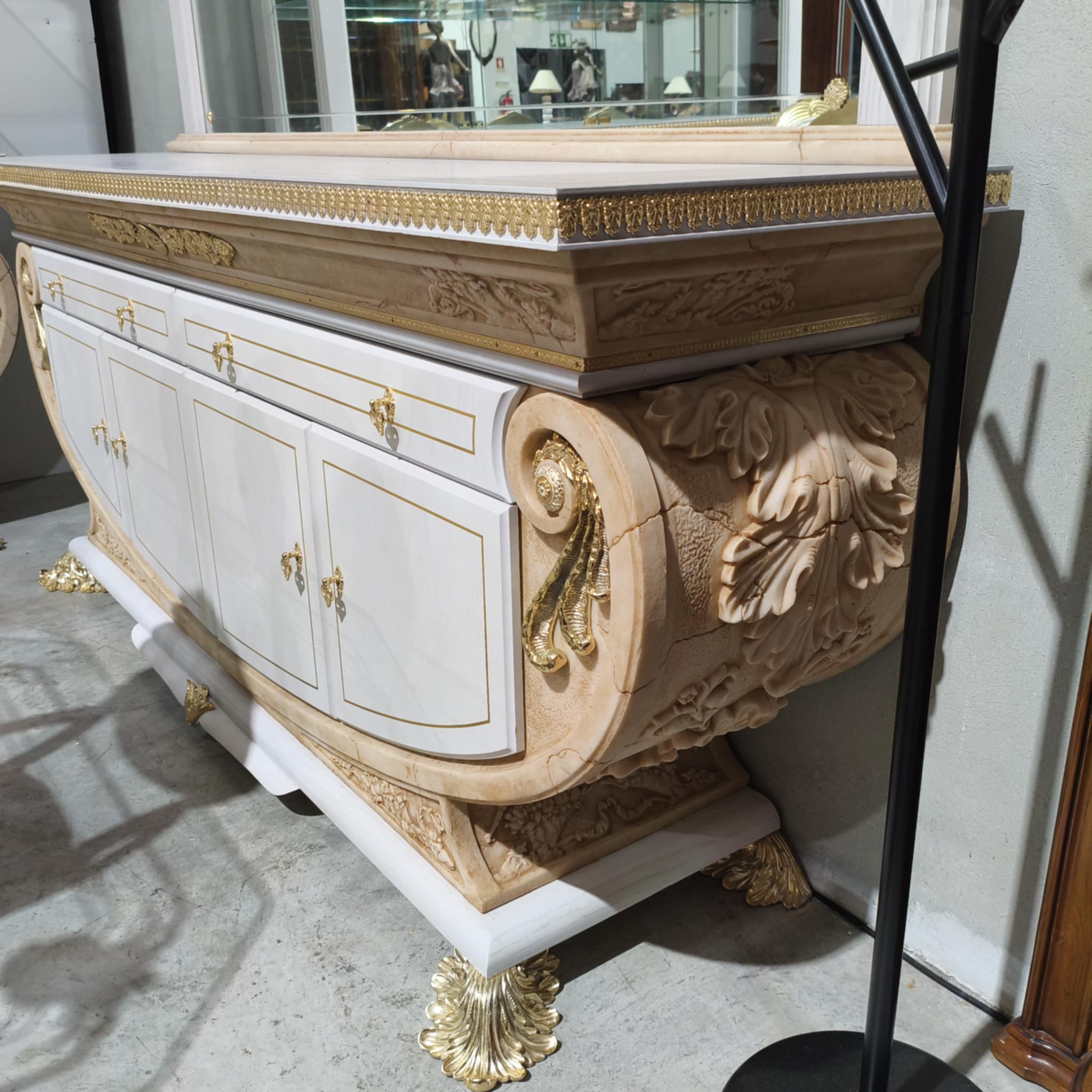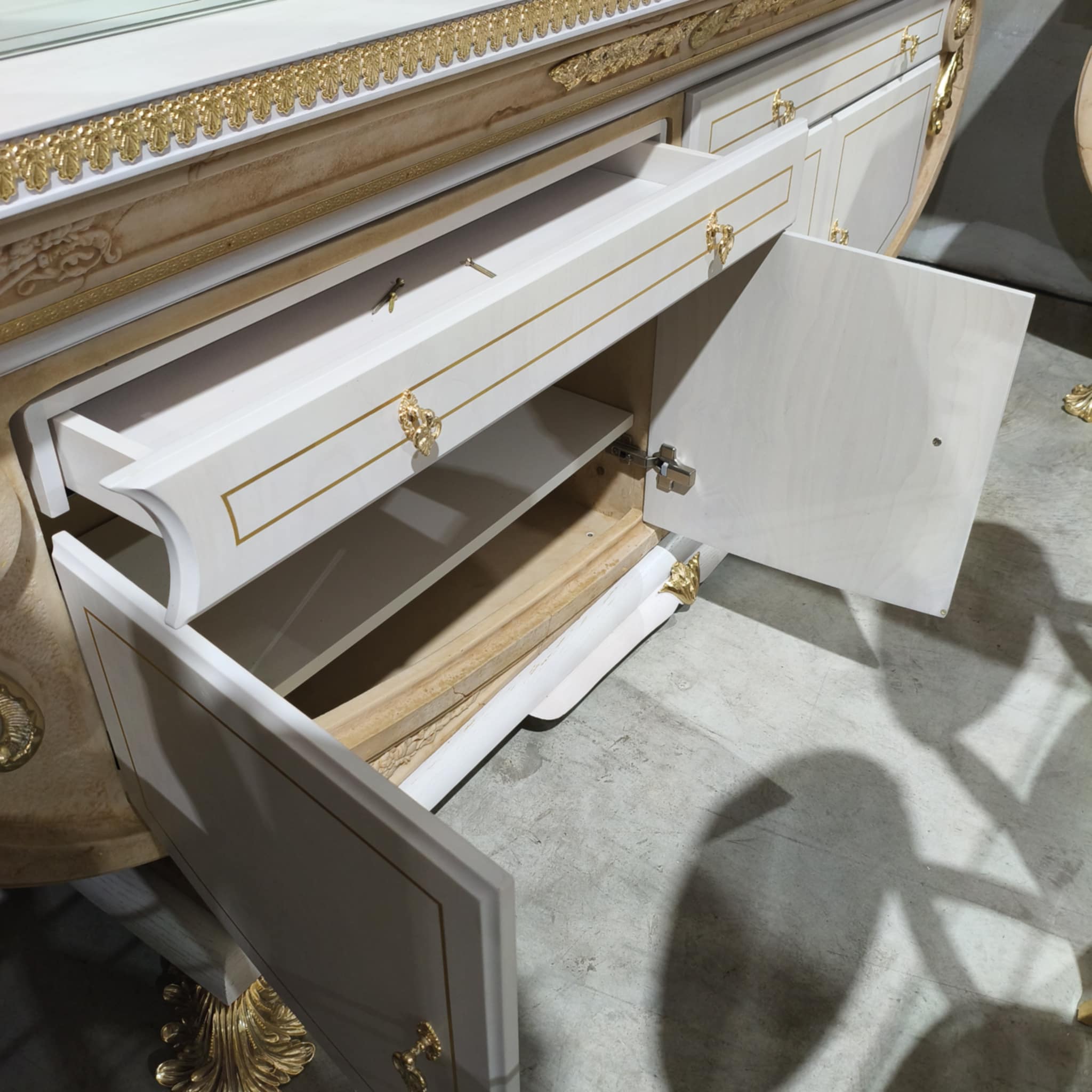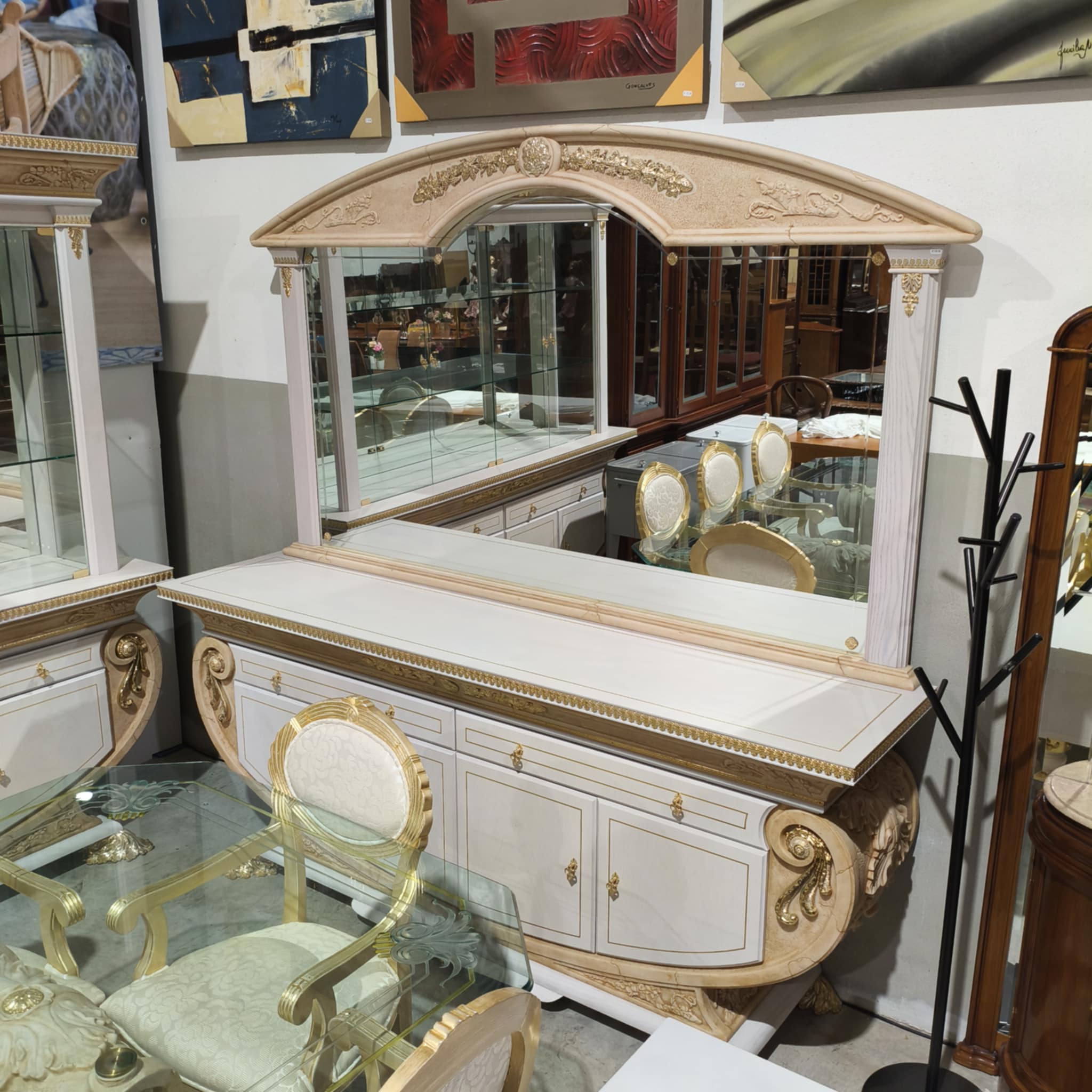 Aparador em madeira lacado em branco, com espelho.