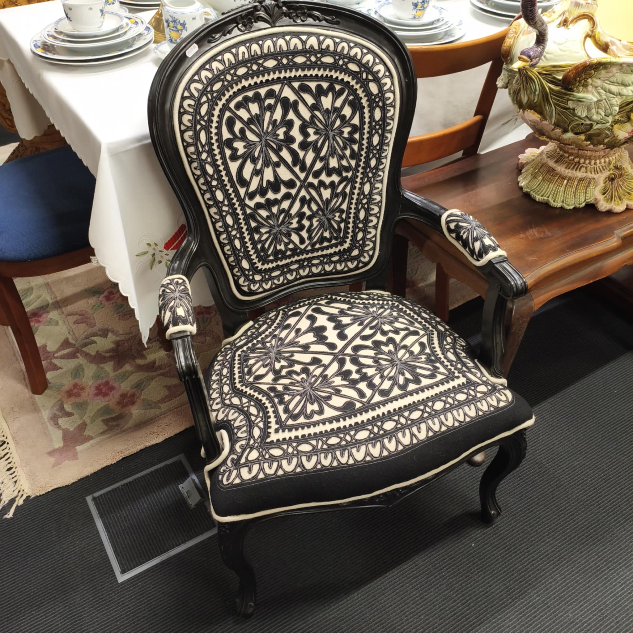 Dois cadeirões clássico com tecido de burel e bordados em honra a miranda do douro.