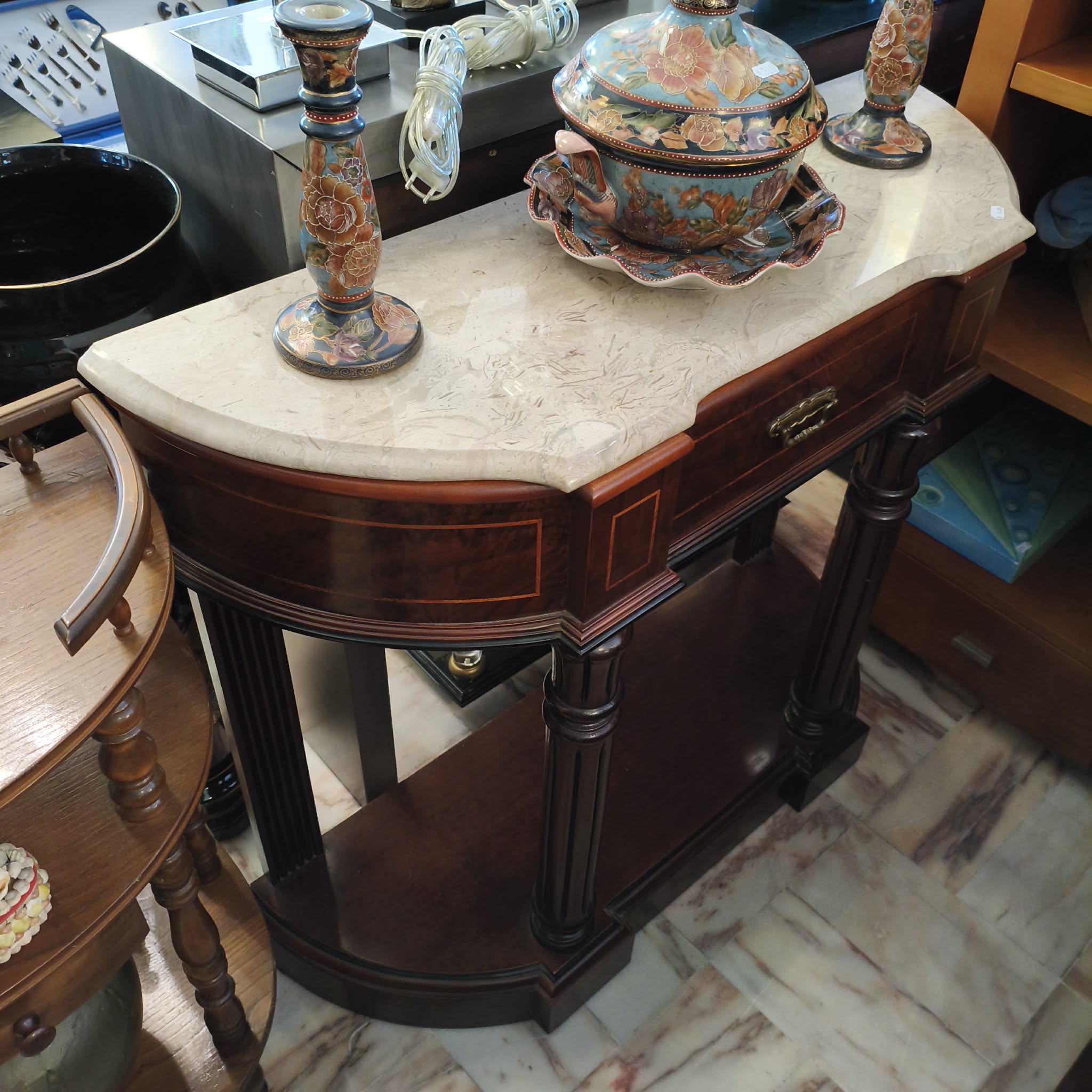 Consola Castanho c/ Pedra Mármore