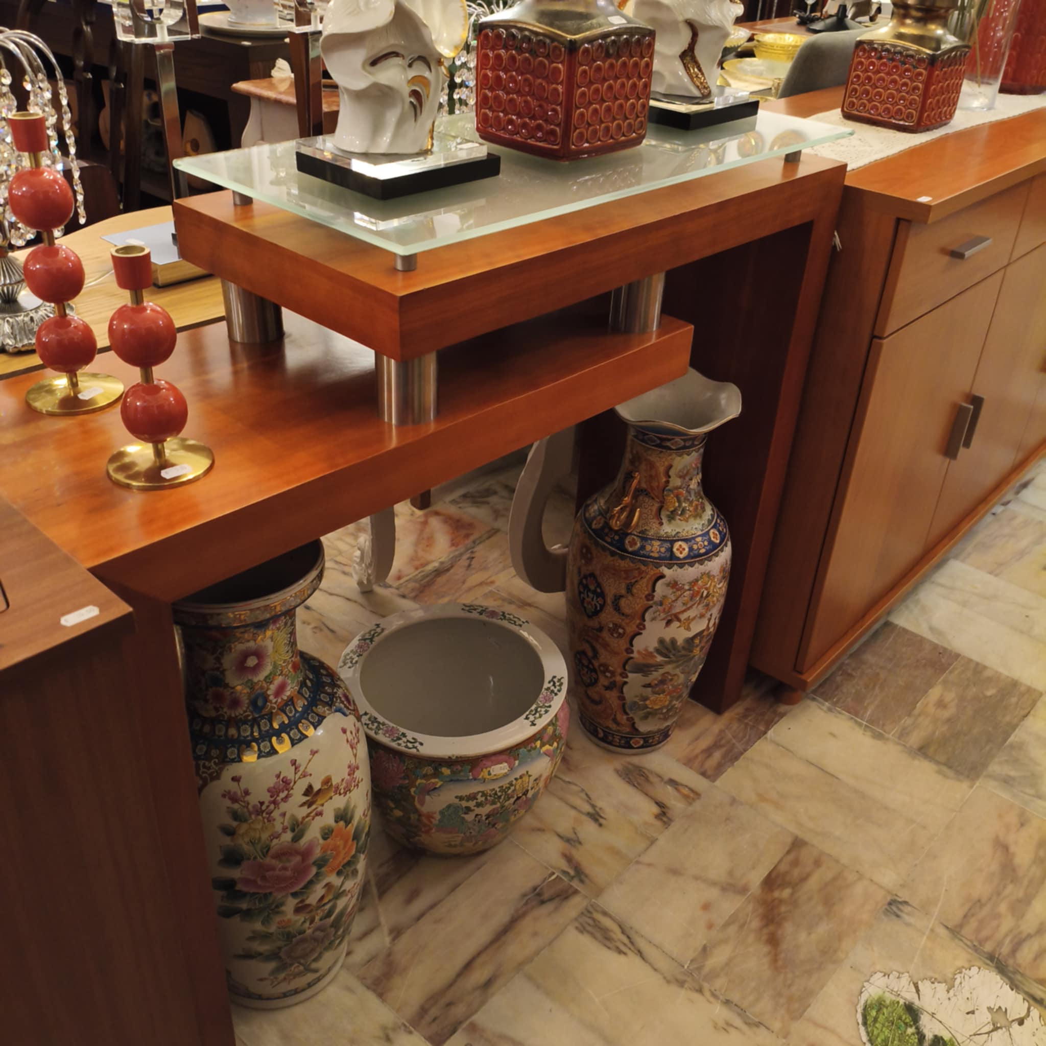 Página Inicial / Moveis / Aparadores e Consolas / Consola CerejeiraConsola CerejeiraMuito bom estado80,00 €MedidasMedidas: 110cm × 35cm × 95cmConsola em cerejeira.Disponível na loja Loja Vila do Conde