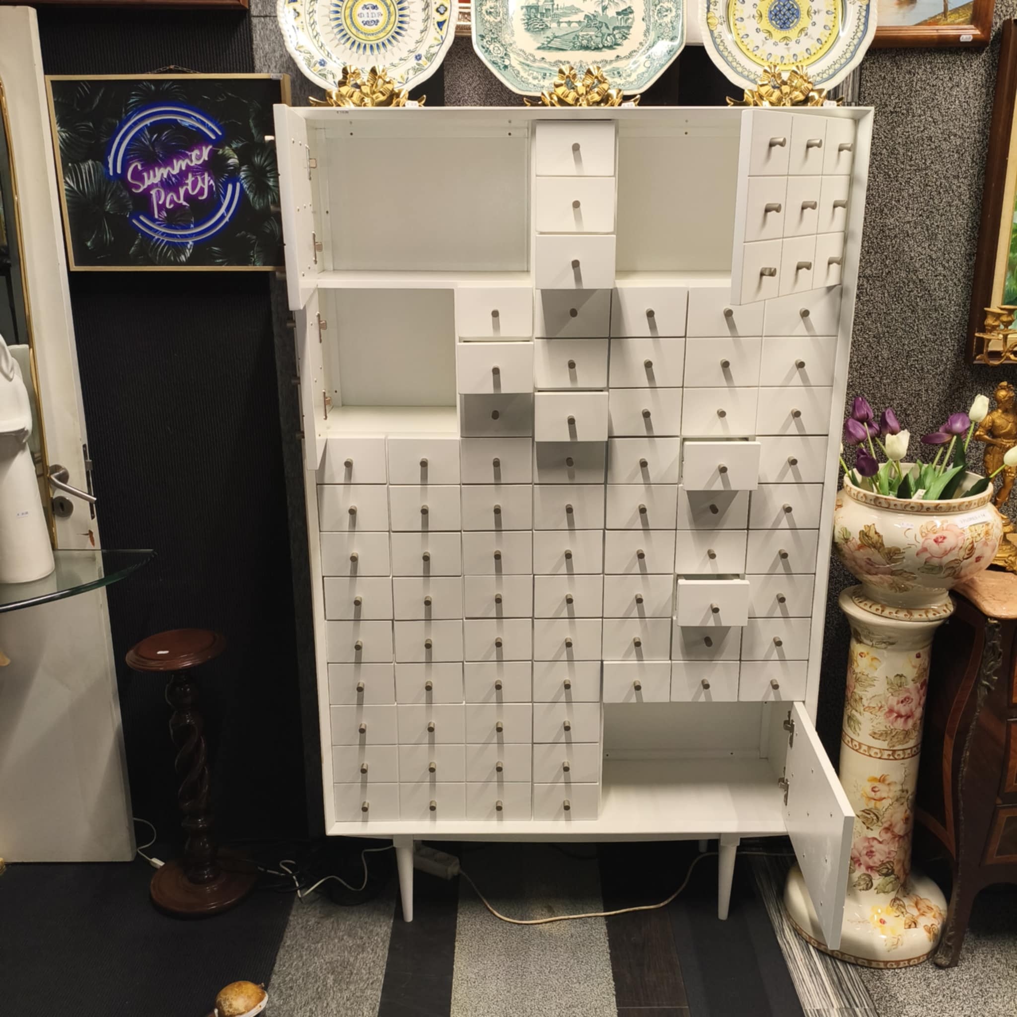 Contador lacado em branco.