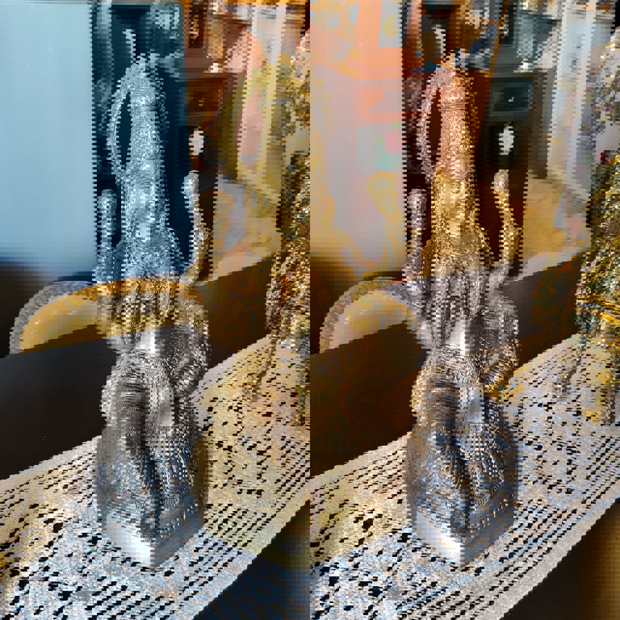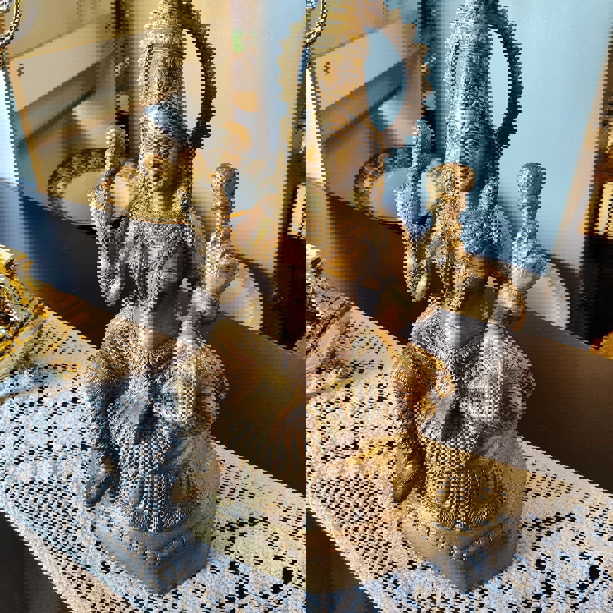 Estatueta hinduísmo Lakshmi, em bronze dourado.