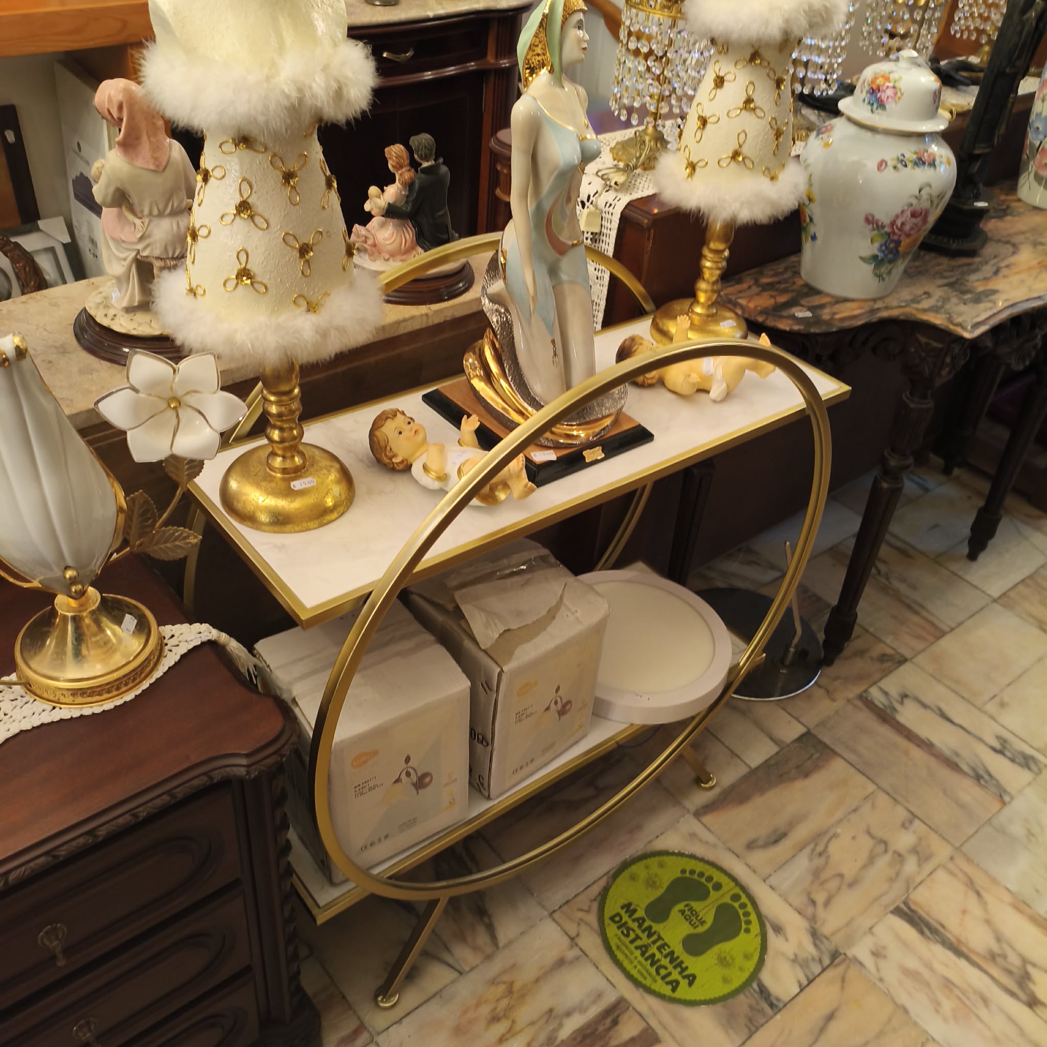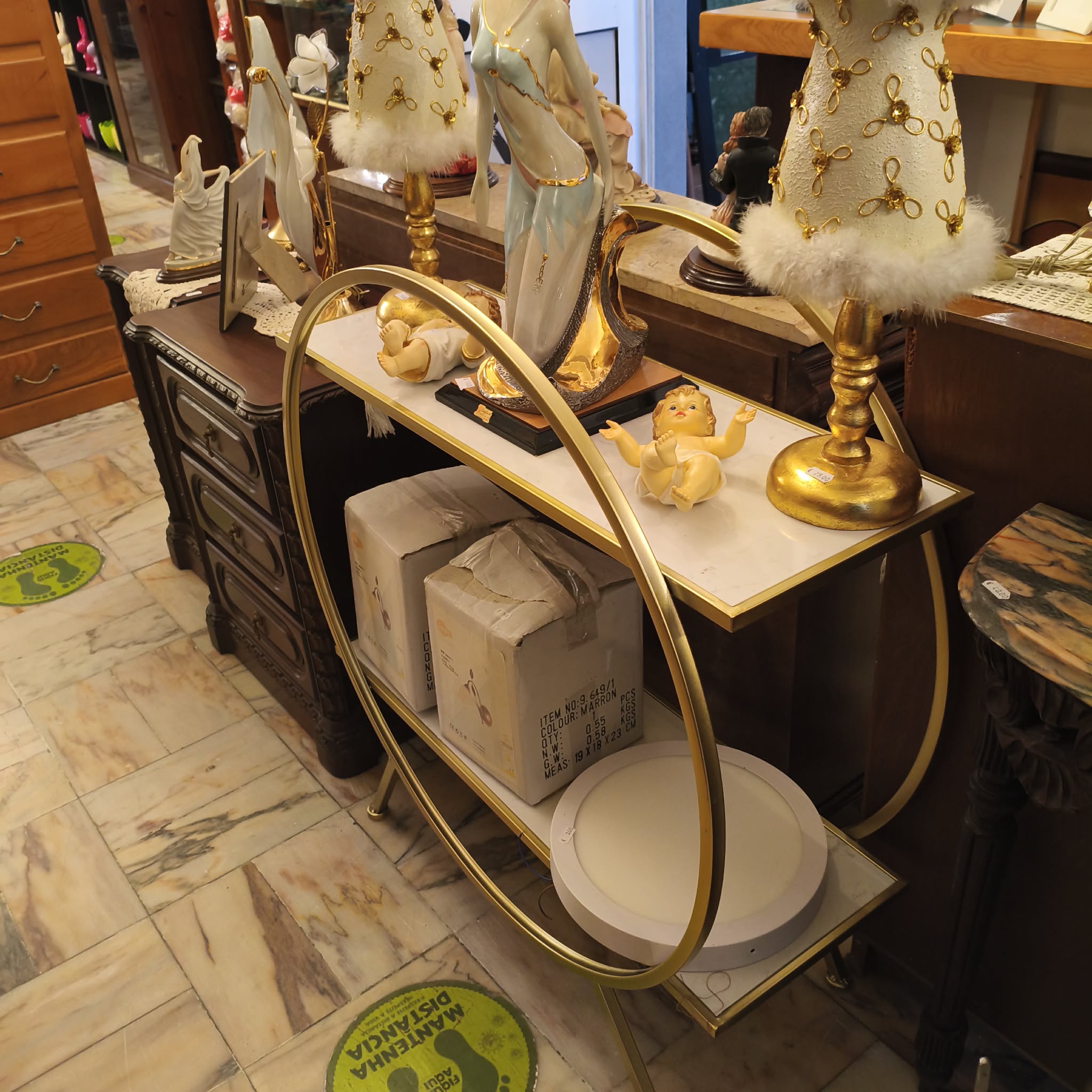 Página Inicial / Moveis / Estantes, Prateleiras e Vitrines / Mesa Apoio DouradaMesa Apoio DouradaMuito bom estado90,00 €MedidasMedidas: 80cm × 30cm × 90cmMesa de apoio dourada.Disponível na loja Loja Vila do Conde