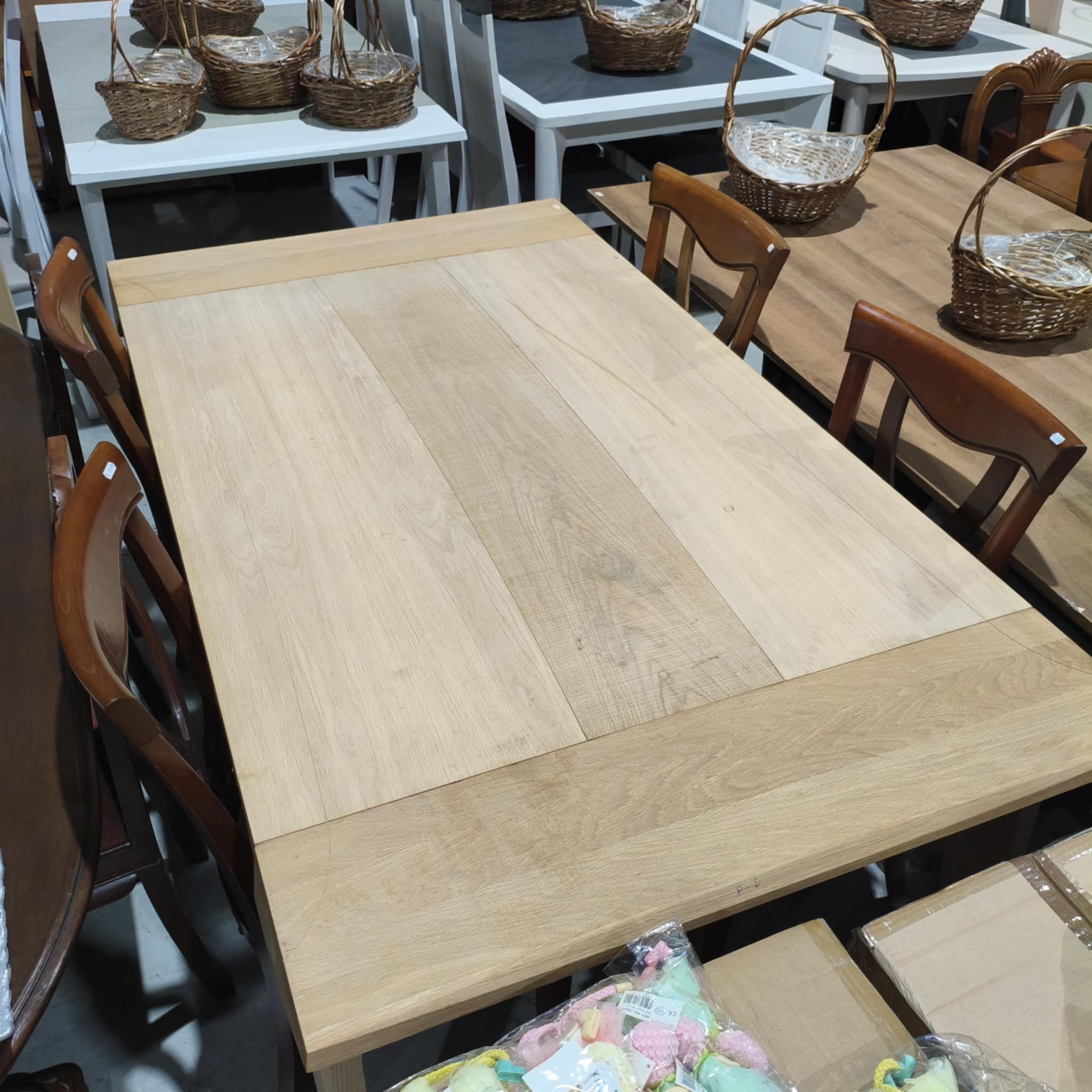 Mesa em madeira maciça em cor mel.