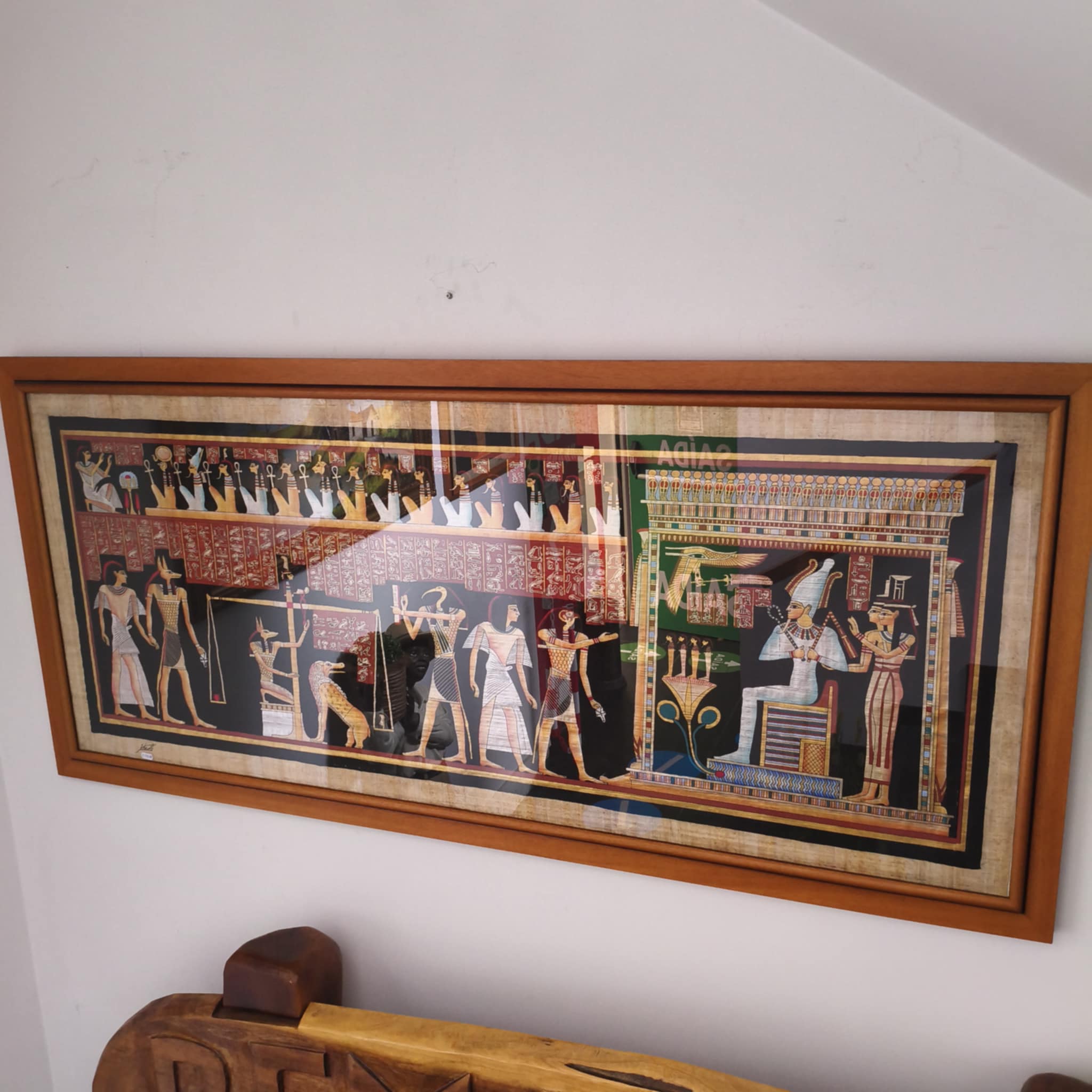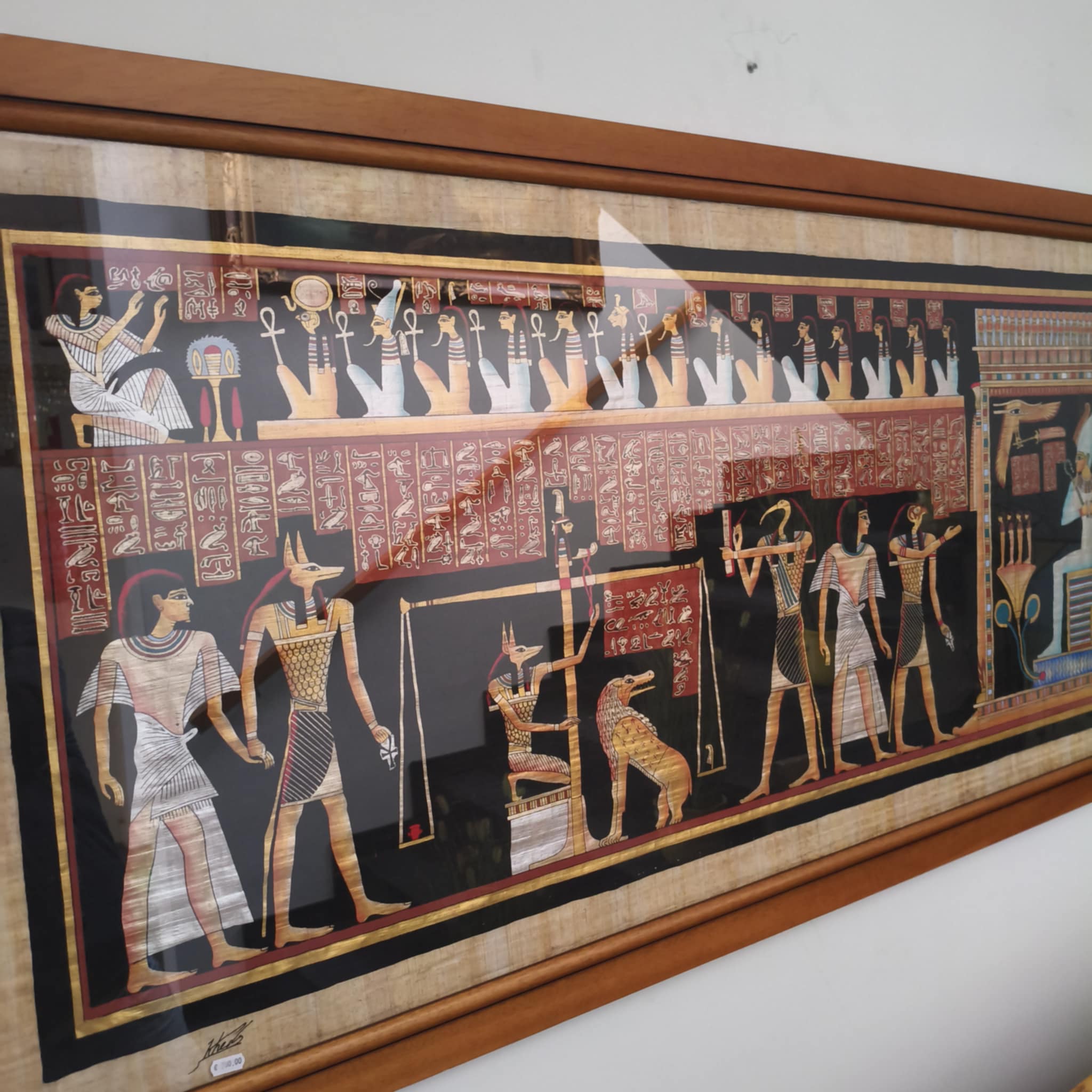 Quadro pintado à mão de sobre otribunal de Osíris, mitologia Egípcia.