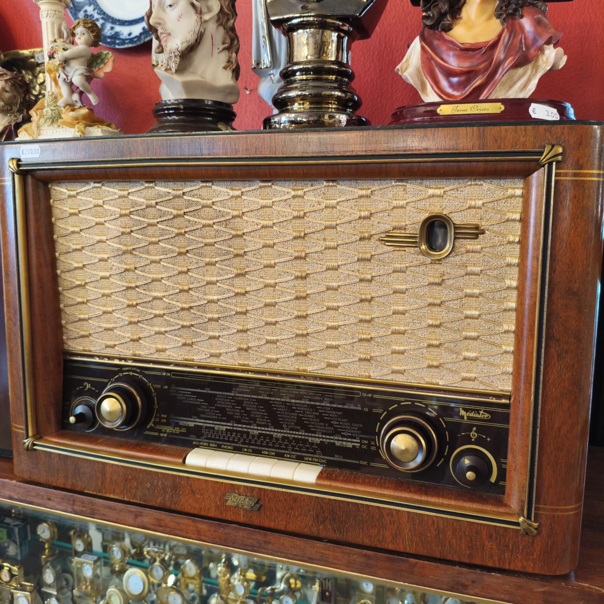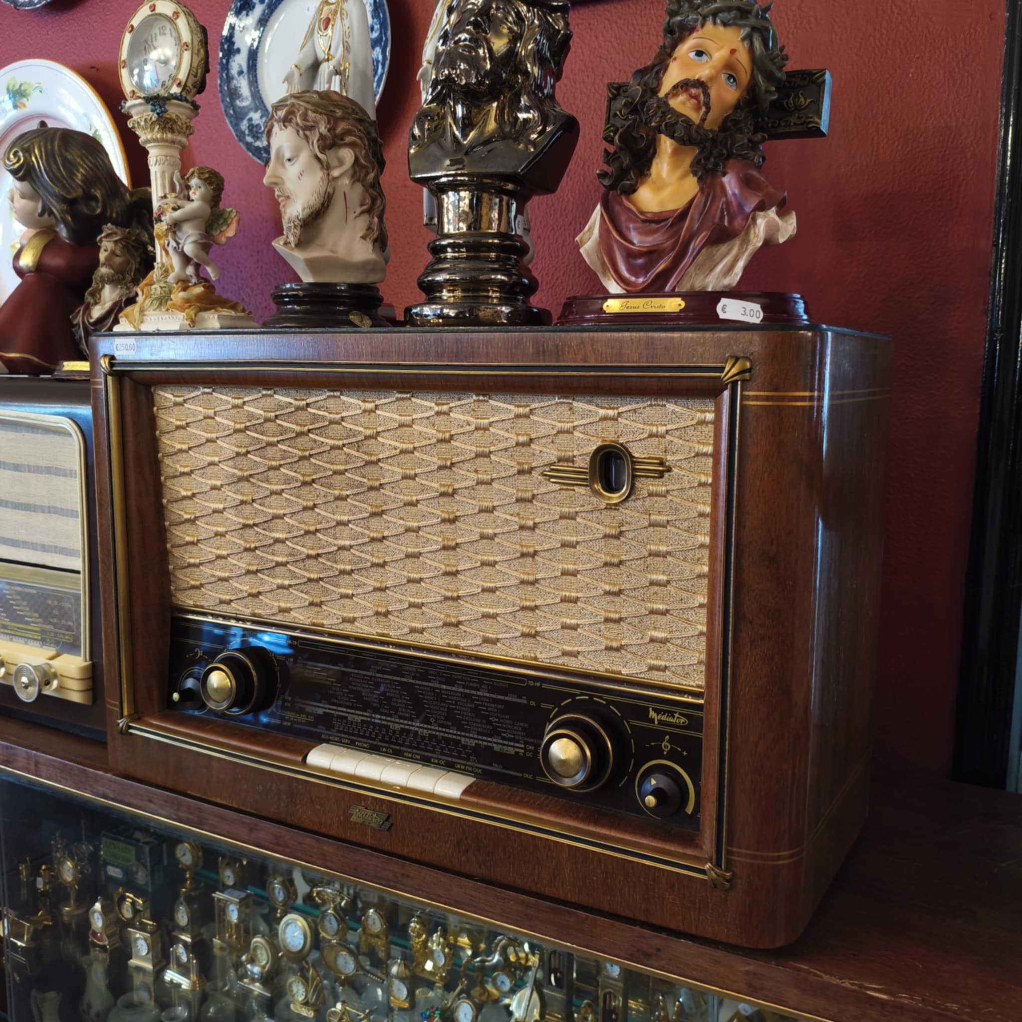 Rádio vintage, marca Philips, modelo Júpiter 543, década 50. Suporta SW, LW, Broadcast e FM.