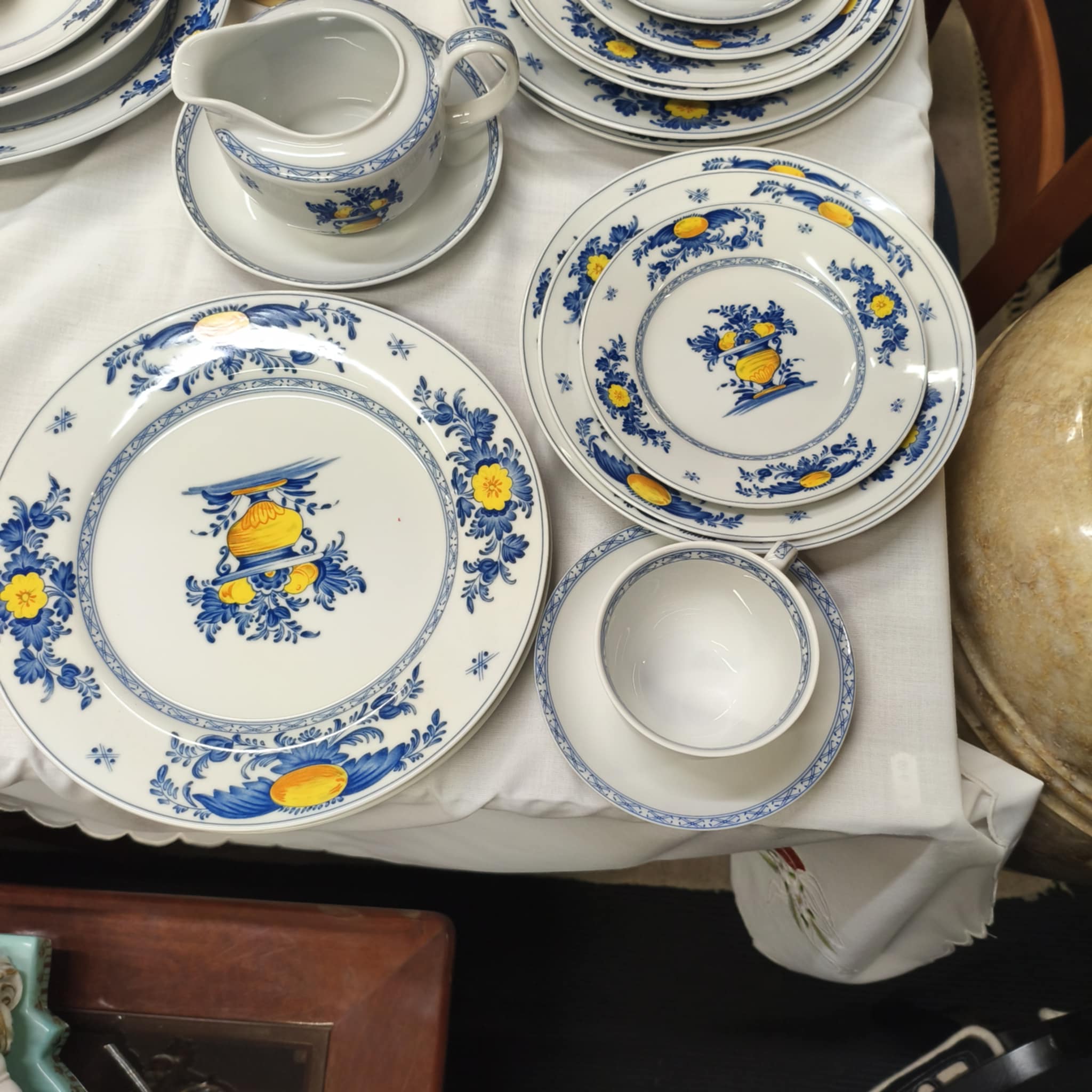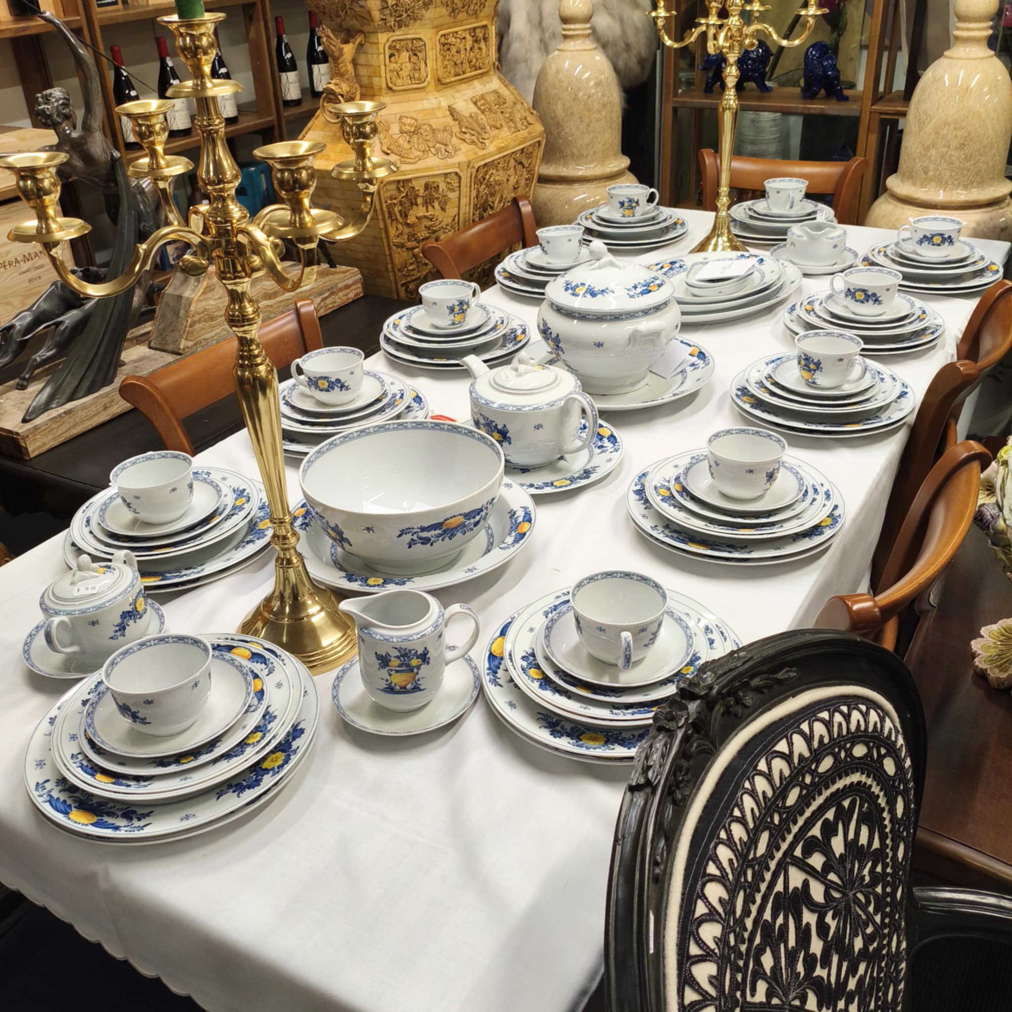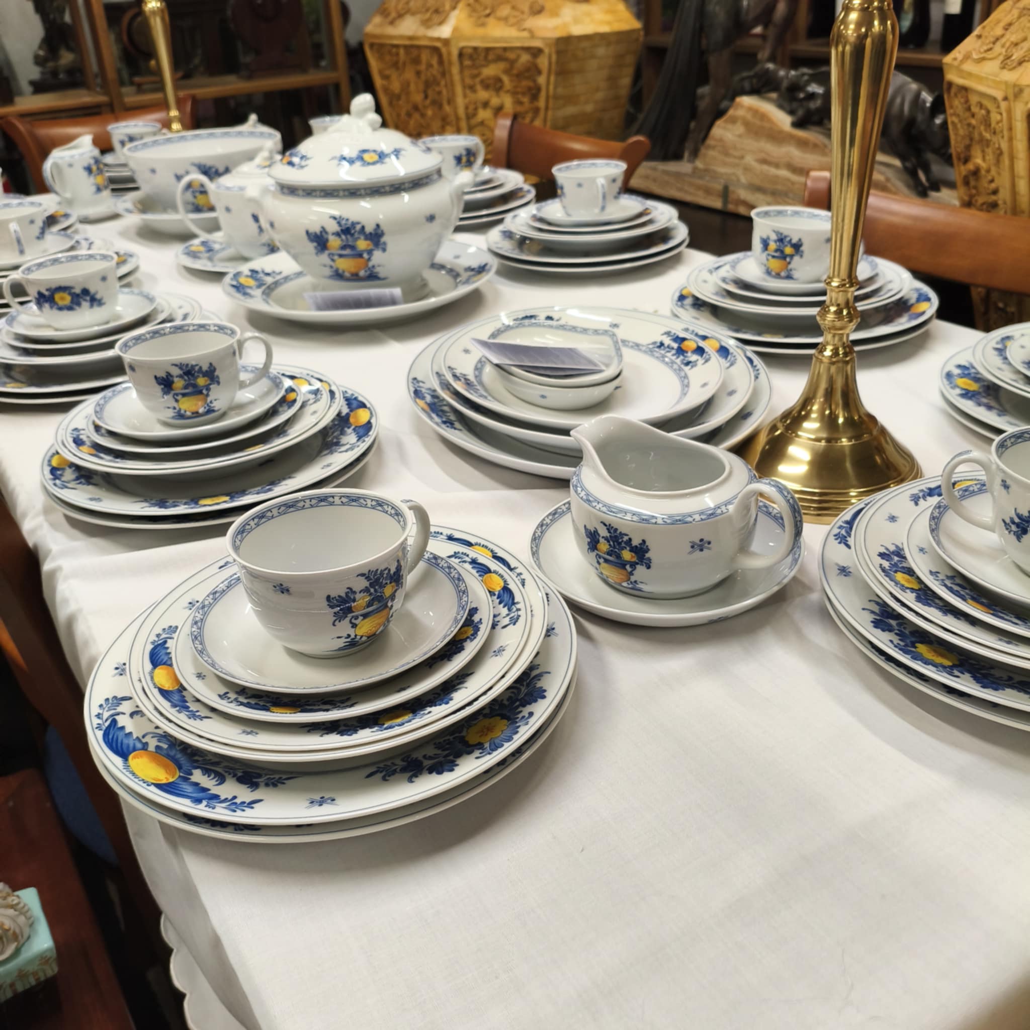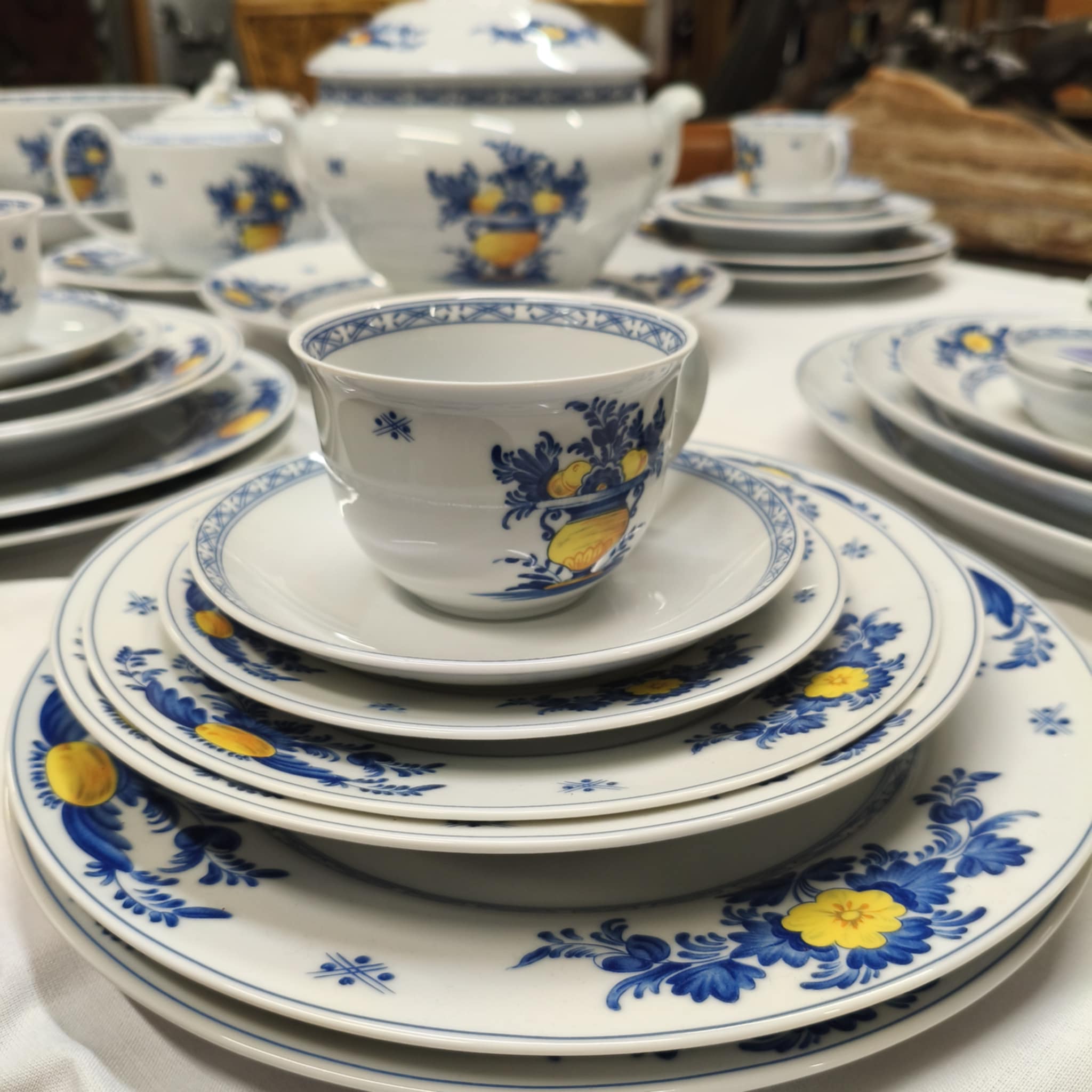 Serviço da marca Vista Alegre. 24x Pratos Principais 12x Pratos de Entrada 12x Pratos Sopa 12x Pratos de Sobremesa 1x Terrina 3x Travessas 1x Molheira 1x Saladeira 1x Prato Serviço 1x Chávena de Leite 12x Chávenas de Chá c/ Prato 1x Açucareiro